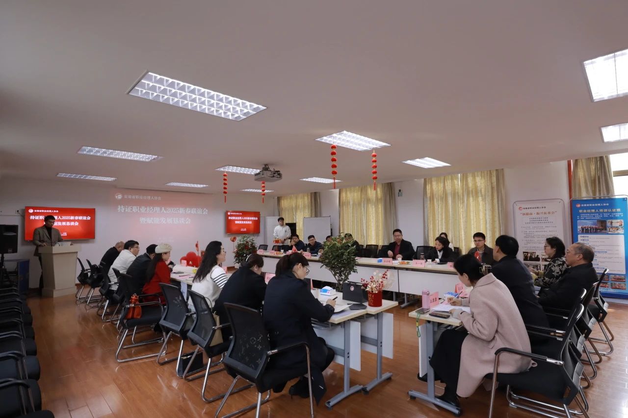 2025年2月25日,安徽省职业经理人协会主办的“持证职业经理人2025新春联谊会暨赋能发展恳谈会”在九华山路培训中心成功举行。协会领导、持证职业经理人代表及会员单位负责人等近40人齐聚一堂,以“赋能、聚力、共赢”为主题,共话职业成长、共谋发展新篇。